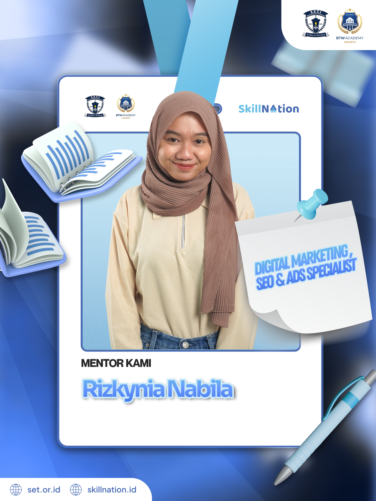 Rizkynia Nabila adalah spesialis Digital Marketing & Ads berbasis data dengan pengalaman lebih dari 4 tahun di bidang SEO, paid advertising, social media, dan content creation lintas industri seperti FMCG, logistik, serta energi terbarukan. Berpengalaman memimpin kampanye digital multi-channel, meningkatkan traffic organik hingga 50%, menghasilkan ratusan leads per kuartal melalui iklan berperforma tinggi, serta menciptakan kampanye kreatif yang menjangkau puluhan ribu impresi secara organik. Aktif dalam peran kepemimpinan komunitas profesional, ia memadukan analisis mendalam dengan storytelling yang kuat untuk mendorong pertumbuhan brand dan engagement audiens.