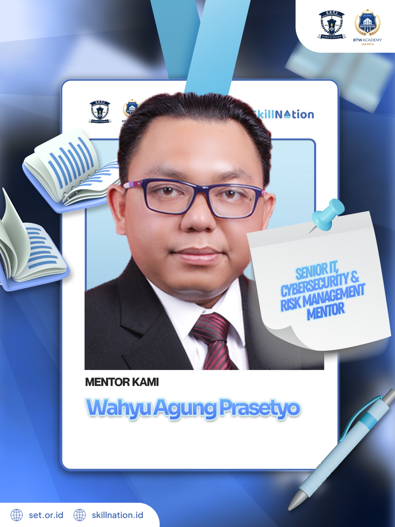 Wahyu Agung Prasetyo adalah profesional dan mentor senior di bidang IT, cybersecurity, dan manajemen risiko dengan pengalaman lebih dari 20 tahun, khususnya di industri keuangan dan perbankan. Berpengalaman memimpin kerangka IT & Cyber Risk Management, serta penguatan ketahanan digital organisasi.